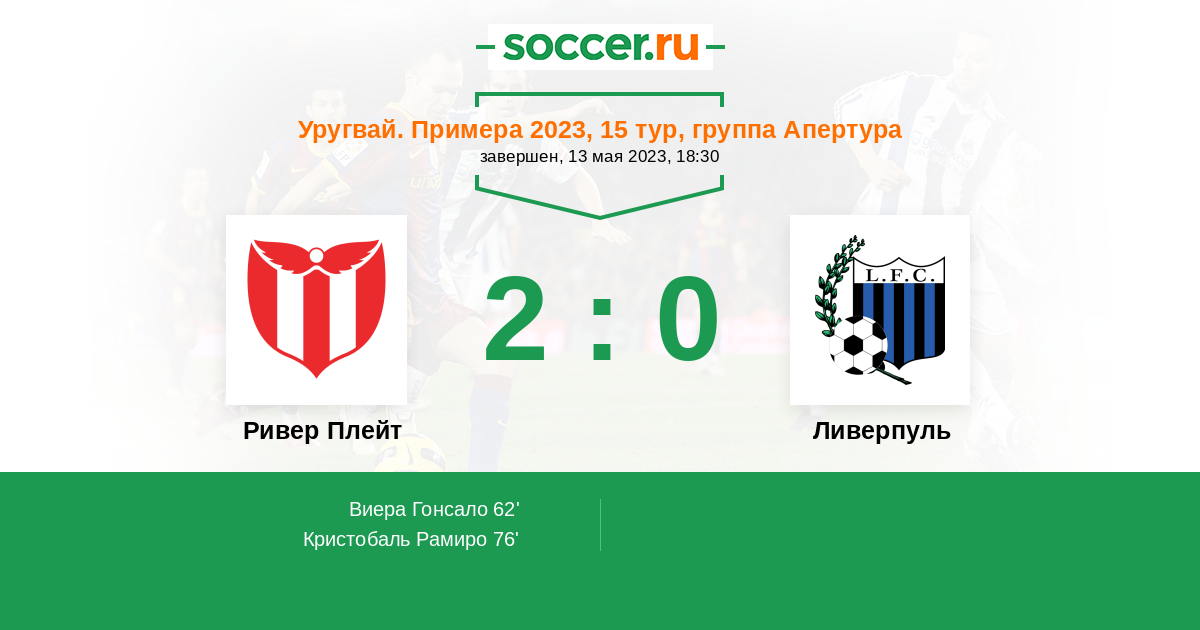 Запасные: 7 Гарсия Пабло (с 70'), 22 Альфонсо Матиас (с 70'), 1 Корреа Фабрицио, 4 Салаберри Орасио, 6 Рамирес Роке, 10 Лопес Пабло, 27 Баррос Кристиан, 32 Тривер Франциско, 15 Эрнан Даниэль Риверо, 20 Чопитеа Рикардо