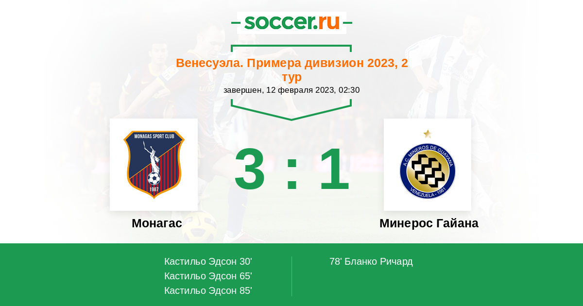 65' (2:0) Кастильо Эдсон (34)