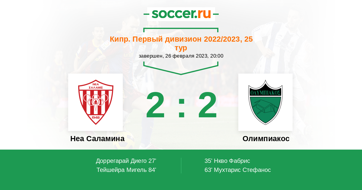 Запасные: 8 Тейшейра Мигель (с 46'), 20 Ботеак Эрик (с 62'), 15 Климович Владислав (с 69'), 28 Маргаса (с 69'), 48 Сантос Тиаго (с 85'), 3 Малеккидес Гиоргос, 5 Кацикас Гиоргос, 19 Фрагкоу Андреас, 21 Николау Томас, 24 Леуко Серж, 30 Киссас Тасос, 70 Алвес Рибейро