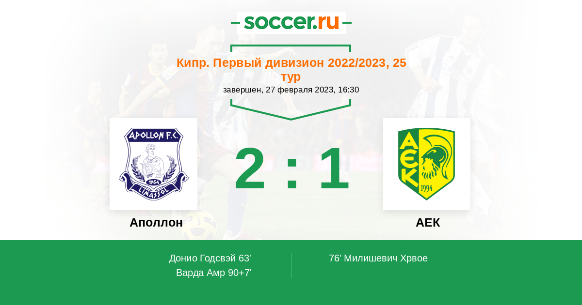 90+7' (2:1) Варда Амр (74)