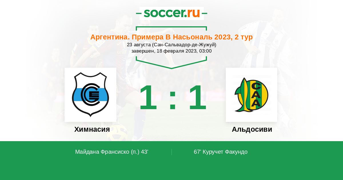 67' (1:1) Куручет Факундо