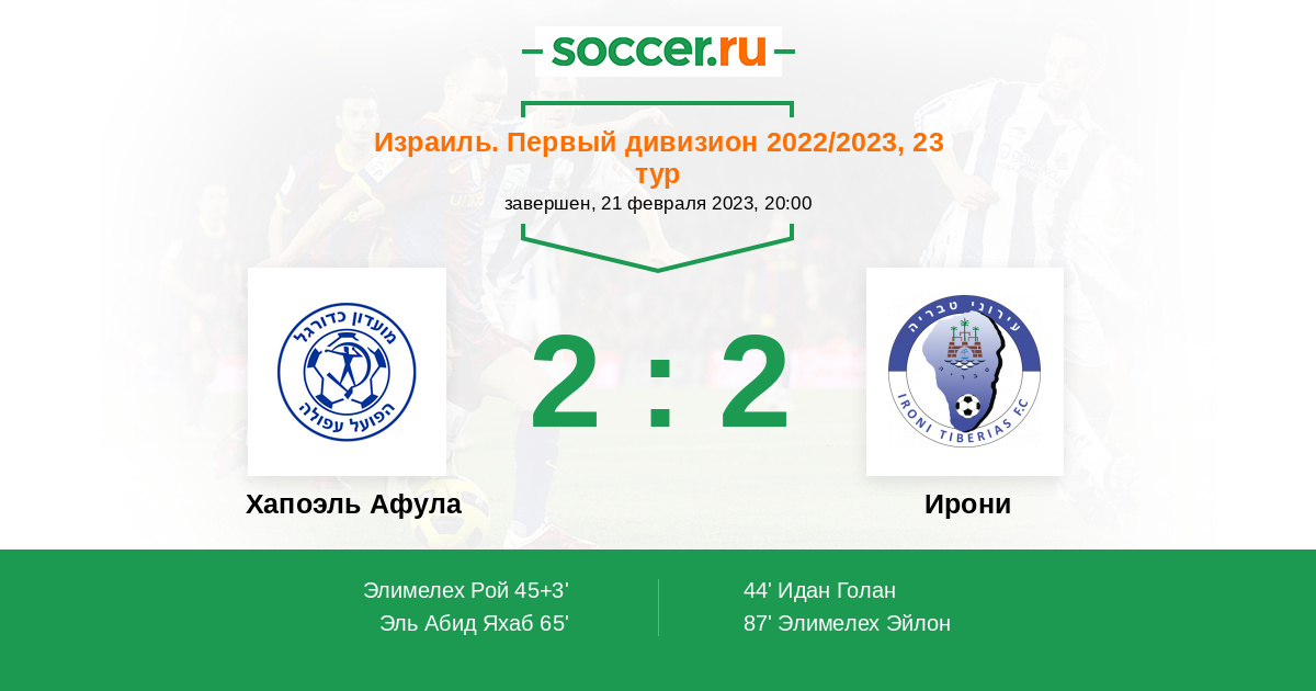 Запасные: Хирш Шахар (с 57'), Азроэль Исраэль (с 77'), Шукрун Лави (с 77'), Петши Саша (с 77'), Катри Рой (с 87'), Коэн Афик, Шанкор Алмог, Азар Илай, Салкинг Лиав