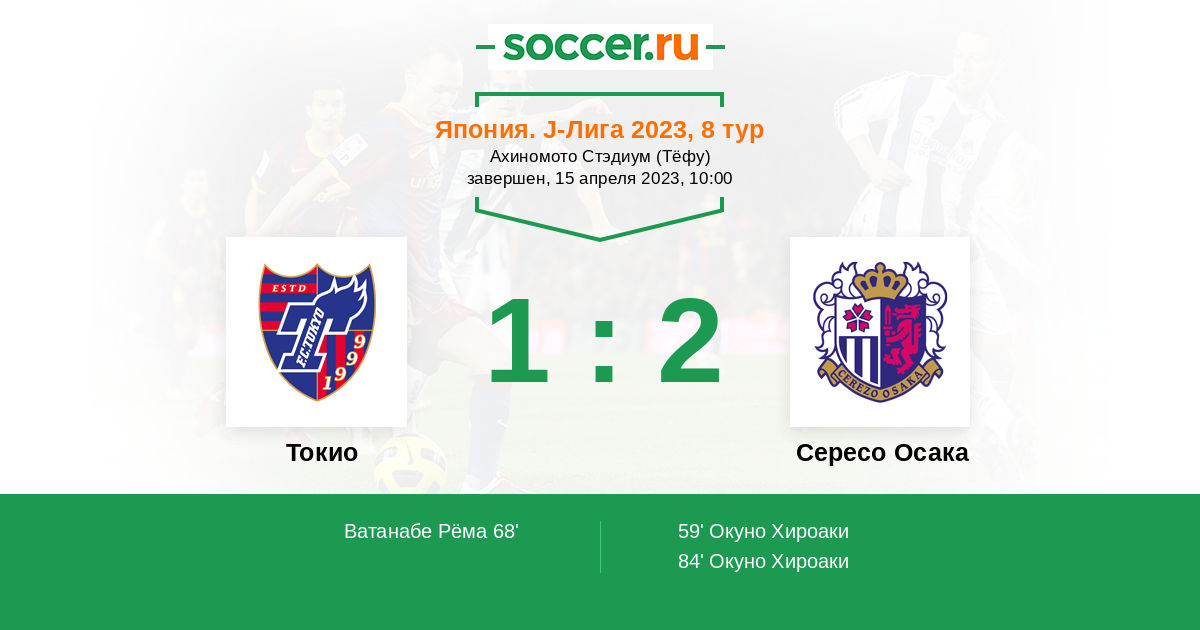 84' (1:2) Окуно Хироаки (25) (Уэхо Сатоки (7))