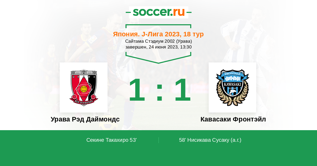 58' (1:1) Автогол Нисикава Сусаку (1)