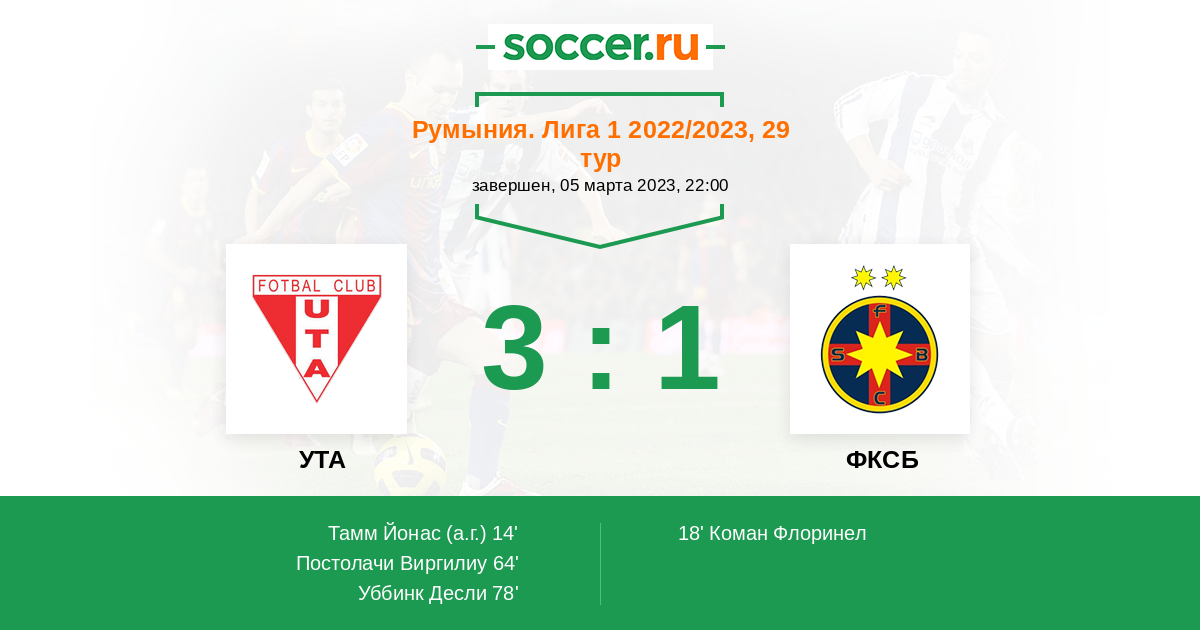 78' (3:1) Уббинк Десли (20) (Поп Рареш (55))