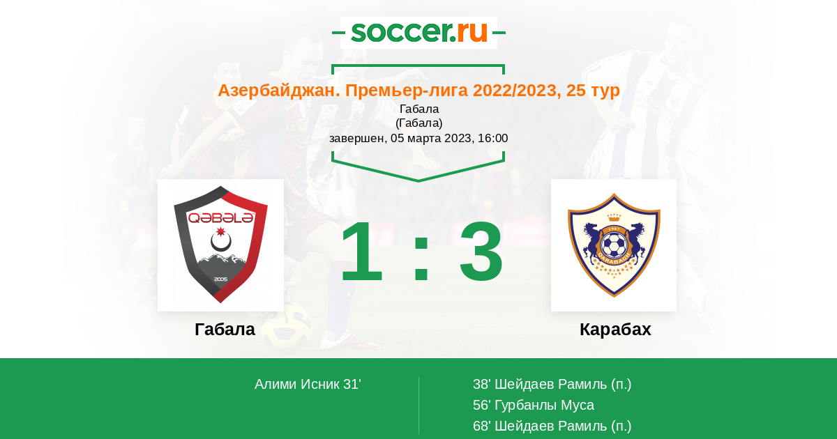 68' (1:3) Шейдаев Рамиль (77)