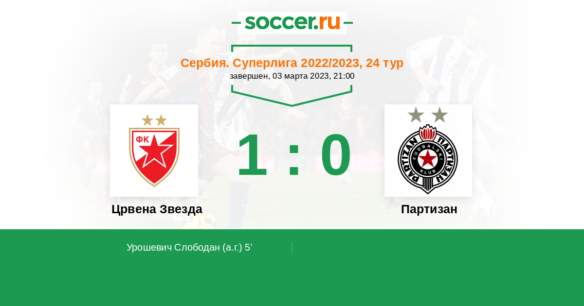 5' (1:0) Автогол Урошевич Слободан (72)