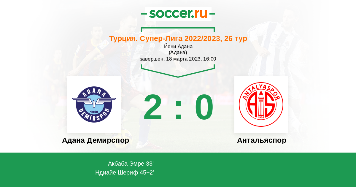 33' (1:0) Акбаба Эмре (20) (Н'Диайе Папе (17))