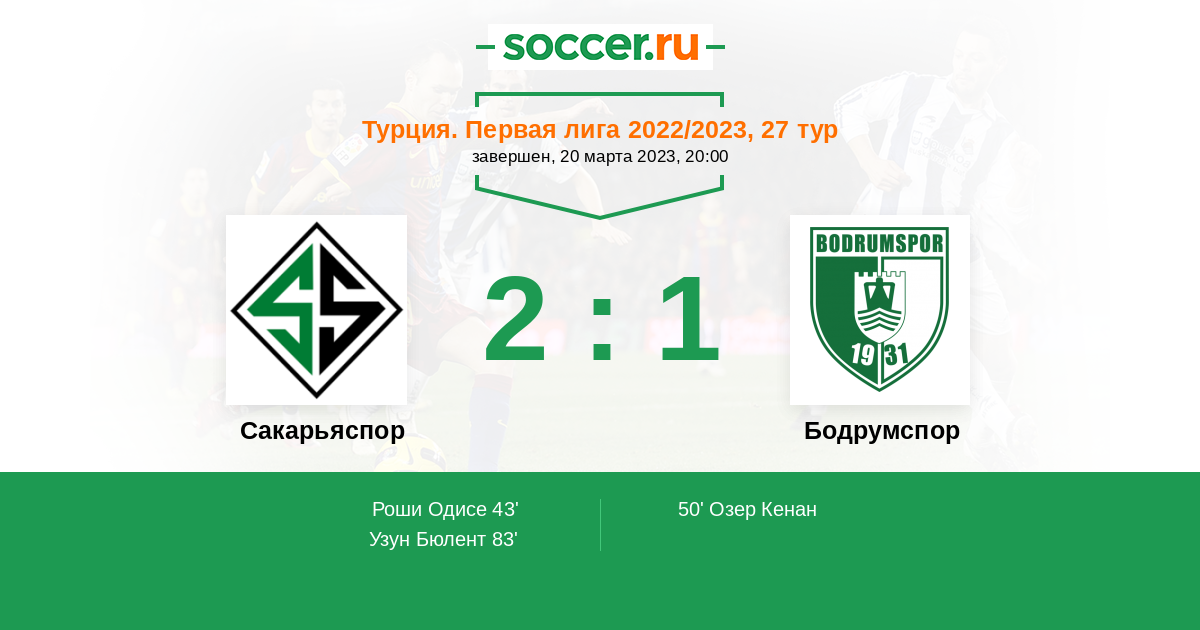 83' (2:1) Узун Бюлент (53) (Роши Одисе (21))