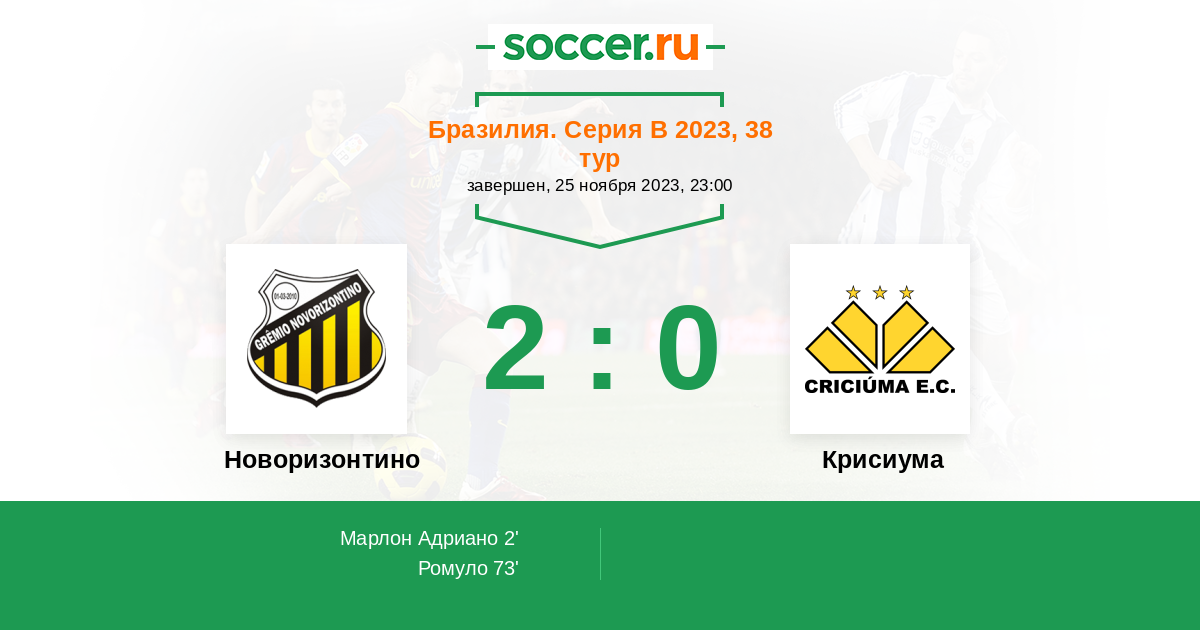 2' (1:0) Марлон Адриано (28) (Ромуло (17))
