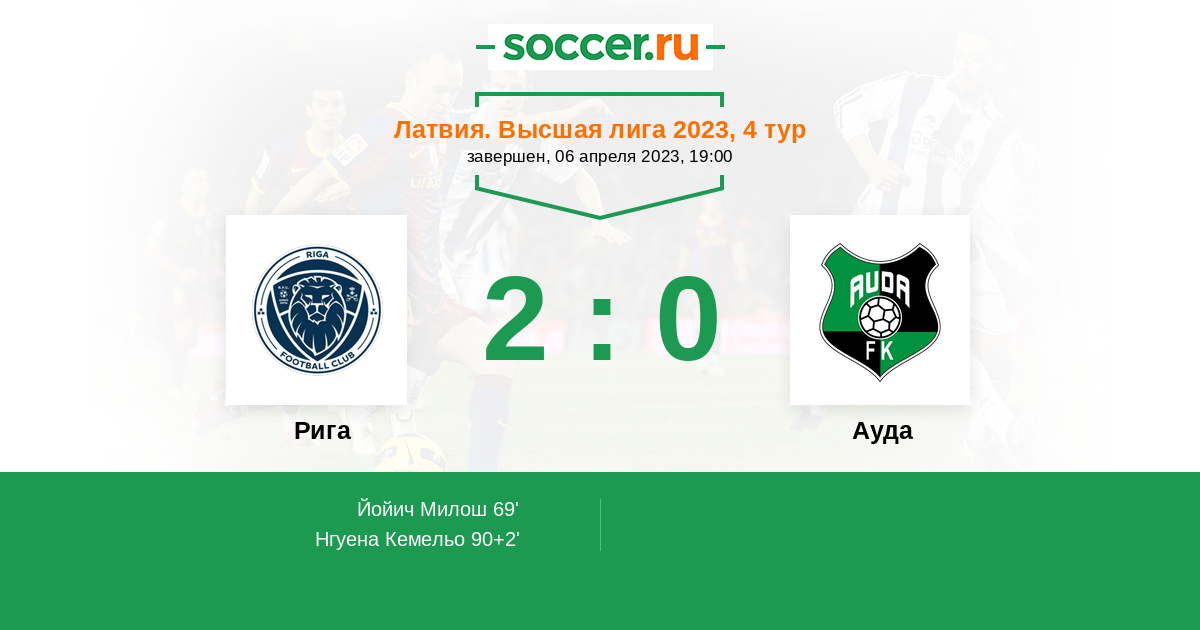 Запасные: 93 Нгуена Кемельо (с 46'), 37 Карамоко Абубакар (с 46'), 23 Даскевич Эдуардс (с 58'), 95 Рангел (с 83'), 33 Ильинс Кирилс (с 83'), 99 Рамирес Регинальдо, 11 Сойсало Микаэль, 12 Зоммерс Кристапс, 4 Коротковс Илья
