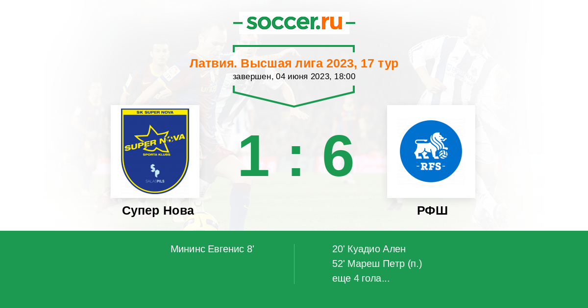 8' (1:0) Мининс Евгенис (97) (Расчевскис Ольгертс (88))