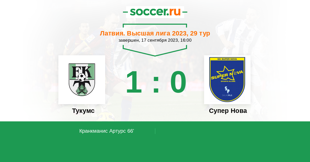 66' (1:0) Кранкманис Артурс (19) (Каушелис Кристианс (44))