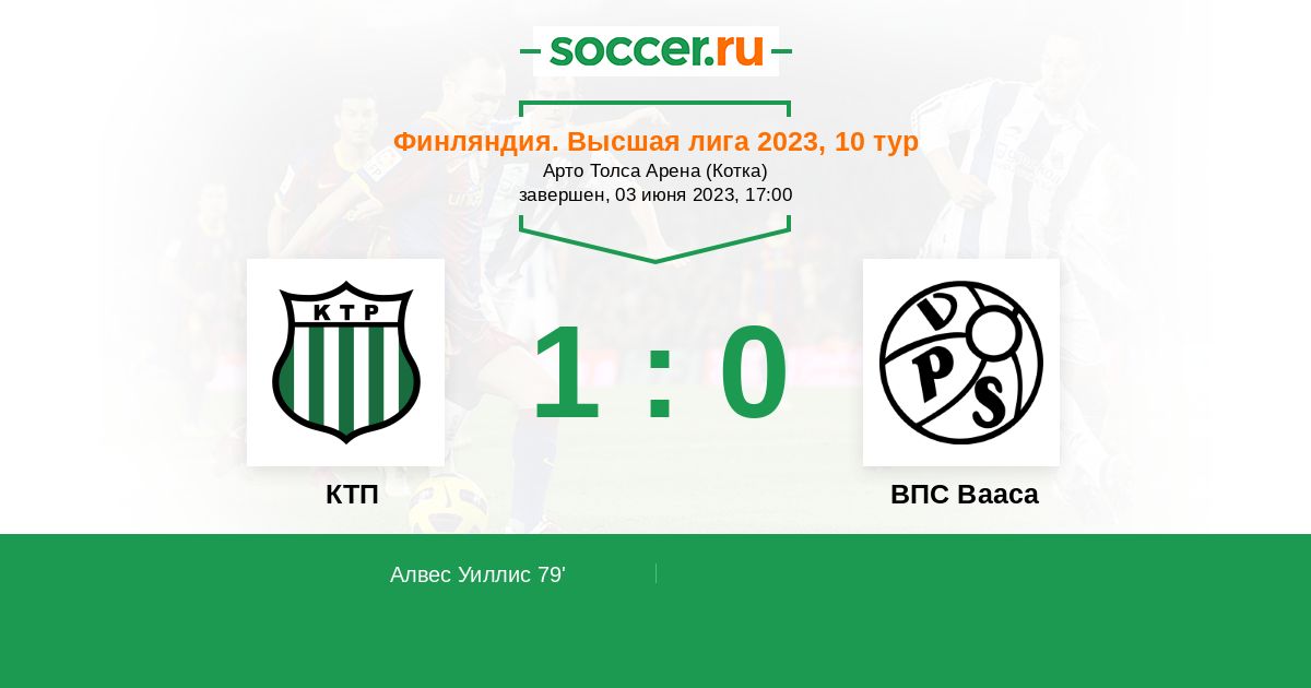 79' (1:0) Алвес Уиллис (10) (Де Врей Джек (28))