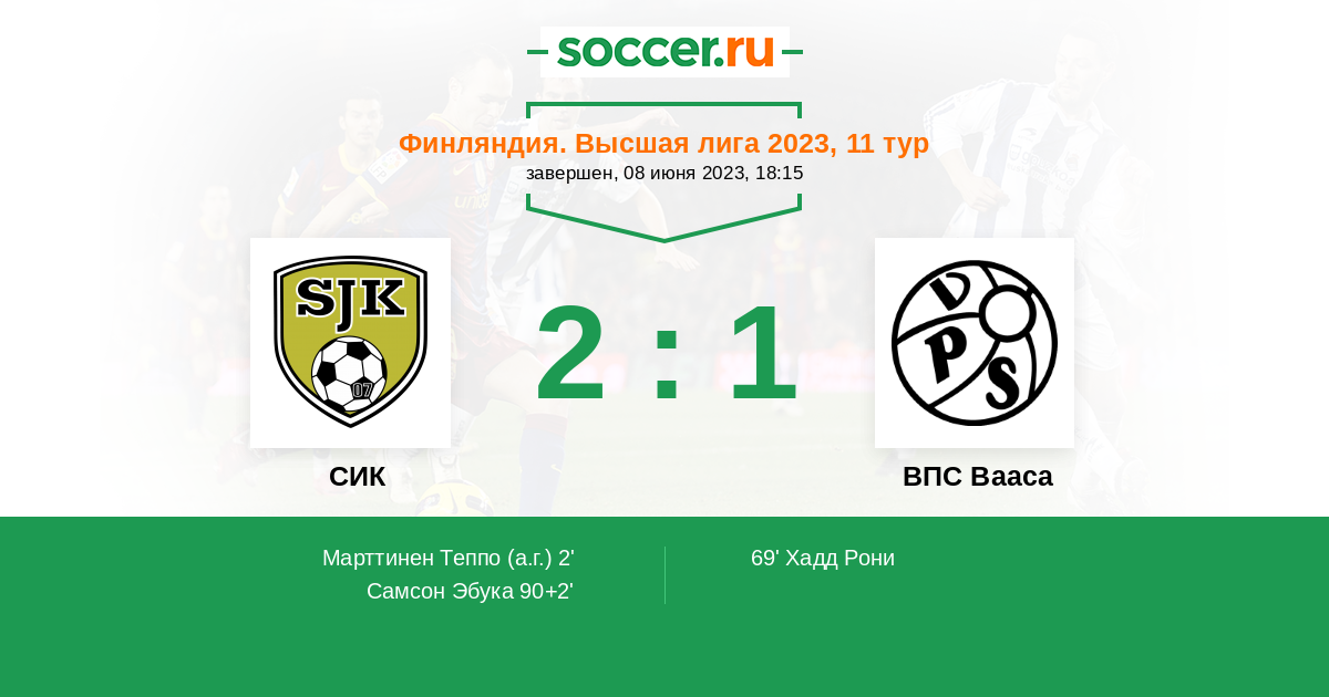 2' (1:0) Автогол Марттинен Теппо (1)