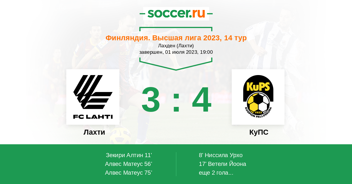 8' (0:1) Ниссила Урхо (10) (Габриэль Биспо (19))