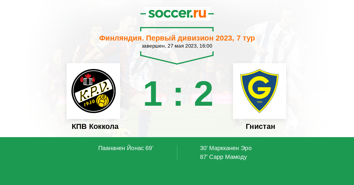 30' (0:1) Маркканен Эро (9)