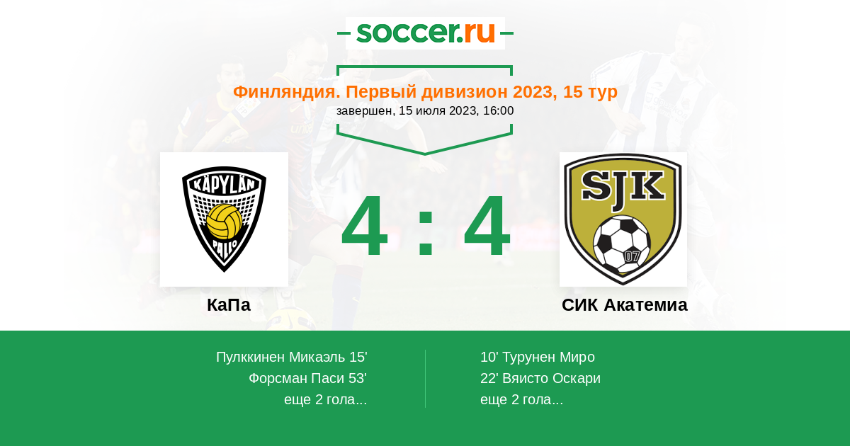Запасные: 15 Или-Хитанен Кристиан (с 46'), 7 Н'Сомбо Кальвин (с 70'), 10 Сёдербек Мариус (с 70'), 22 Ларссон Кевин (с 80'), 29 Салми Йоонас (с 86'), 3 Хейкуринен Ниилу, 21 Пийспа Алекси