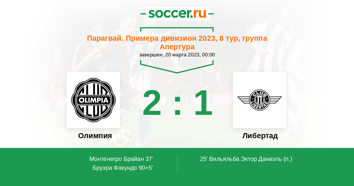 25' (0:1) Вильяльба Эктор Даниэль (15)