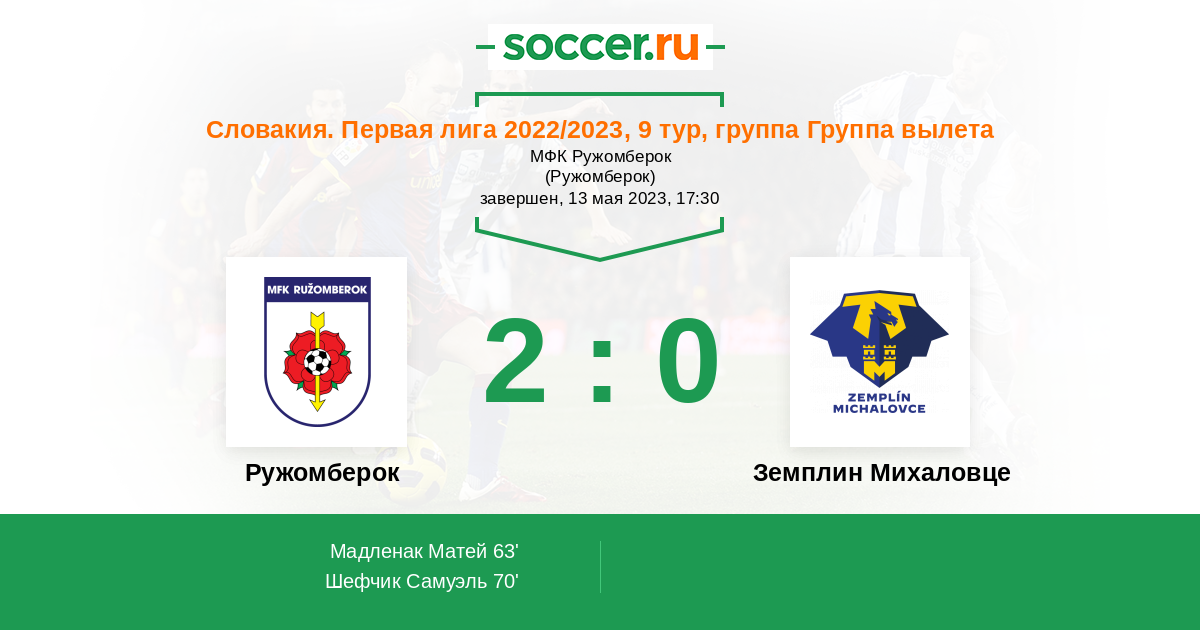 63' (1:0) Мадленак Матей (13) (Шефчик Самуэль (10))