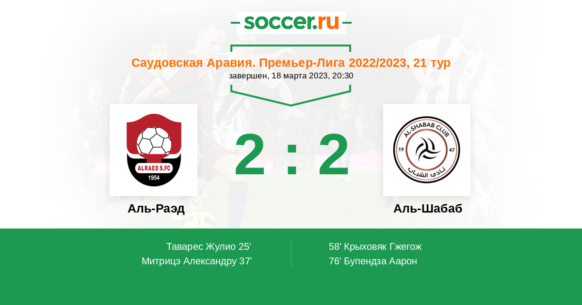 58' (2:1) Крыховяк Гжегож (23) (Аль-Аммар Турки (7))