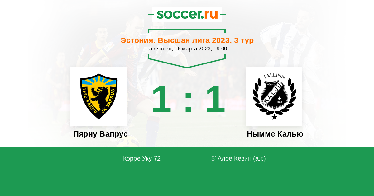 Запасные: 44 Бабичев Михаил (с 63'), 20 Волков Александр (с 85'), 2 Сарнин Артур, 6 Шлейн Герман, 14 Комиссаров Никита, 26 Сихт Ромми, 29 Раттасепп Кристиан, 9 Давид Промисе, 69 Кивесту Ромет