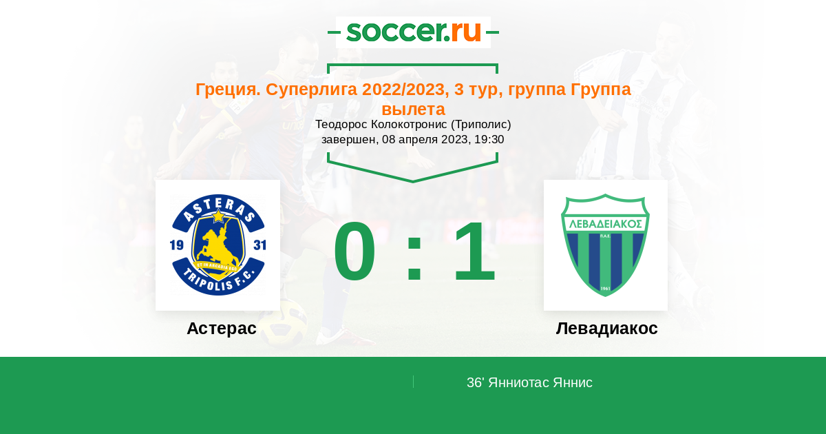 36' (0:1) Янниотас Яннис (17) (Еремеефф Александер (18))