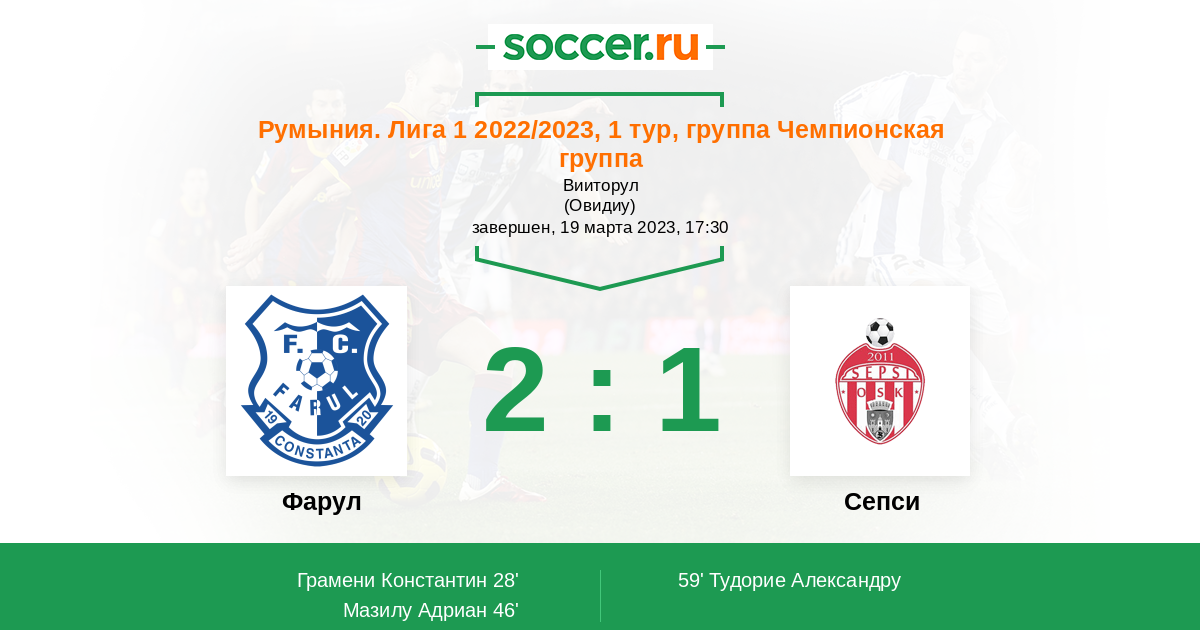 Запасные: 21 Сирбу Дан (с 46'), 4 Дукуре Гробры Кевин (с 73'), 11 Барбоза Матеуш (с 73'), 8 Касап Карлос (с 77'), 45 Маринс Густаво (с 82'), 1 Бузбучи Александру, 77 Сали Энес, 20 Кожокару Ионуц, 23 Баравикас Роландас