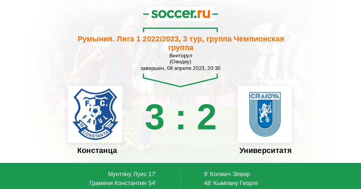 48' (1:2) Кымпану Георге (7) (Колжич Элвир (19))