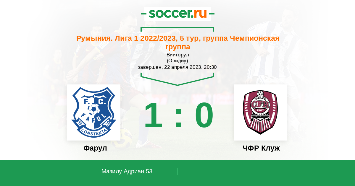 53' (1:0) Мазилу Адриан (26) (Бэлуцэ Тудор (6))