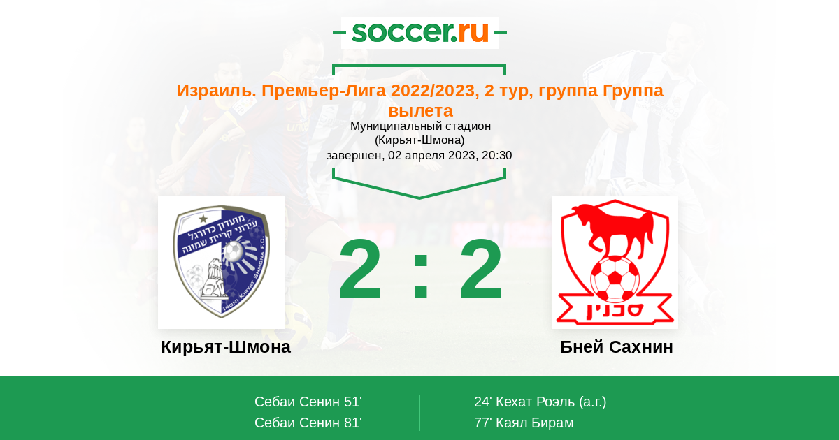 24' (0:1) Автогол Кехат Роэль (19)