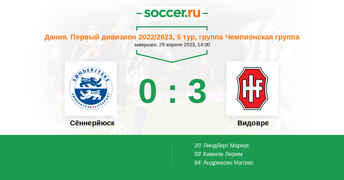 84' (0:3) Андреасен Матиас (27) (Нильсен Матти-Лунд (4))