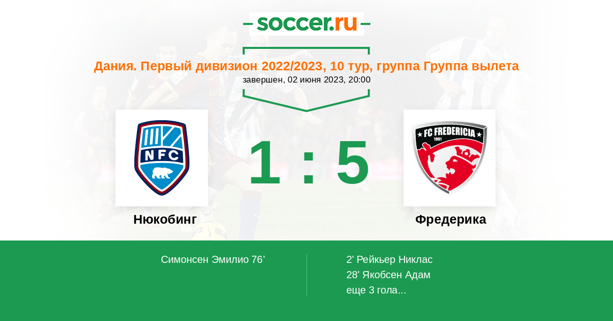 28' (0:2) Якобсен Адам (11) (Ольсен Оливер (12))