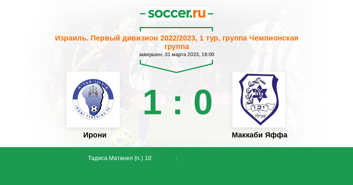 Запасные: Шаабан Базель (с 62'), Мизрахи Офир (с 62'), Абергил Нир (с 75'), Барак Эвиатар (с 86'), Талиас Снир (с 87'), Бениш Даниэль, Вазао Маконант, Бен Давид Рой, Тза'адон Шемор