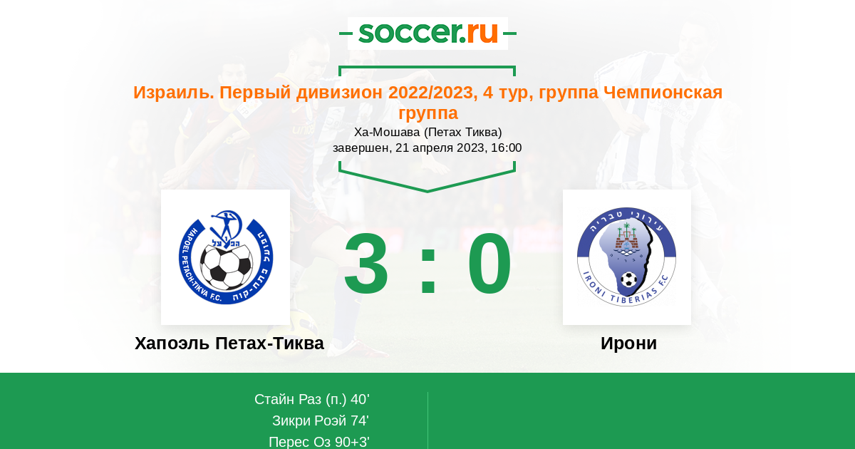 Запасные: Идо Давыдов (с 60'), Перес Оз (с 60'), Беркович Нив (с 71'), Хершко Ассаф (с 87'), Нохи Бар (с 87'), Хаим Изрин, Идан Шемеш, Хаспиа Ран, Ватури Ран