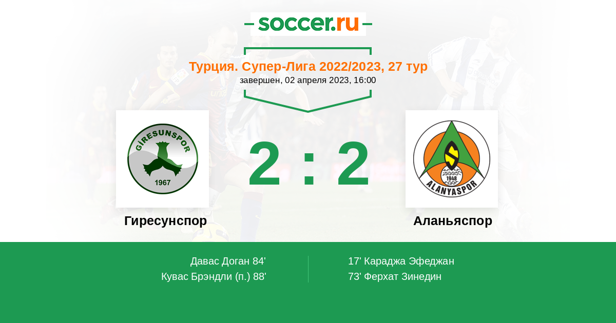 84' (1:2) Давас Доган (17) (Билазер Хайрулла (77))