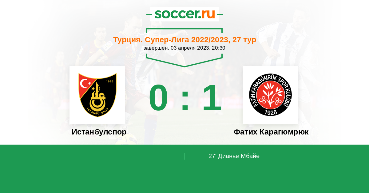 27' (0:1) Дианье Мбайе (9) (Капачак Бурак (22))
