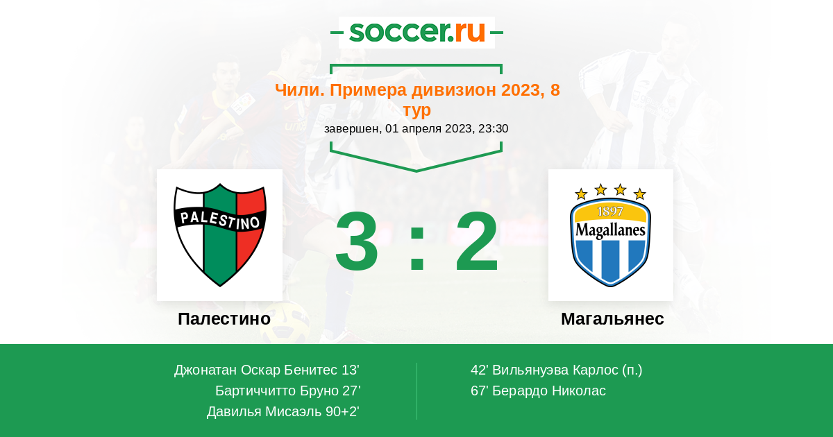 67' (2:2) Берардо Николас (6) (Вильянуэва Карлос (21))