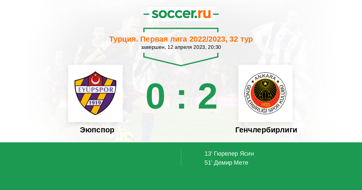 13' (0:1) Гюрелер Ясин (17) (Моха (8))