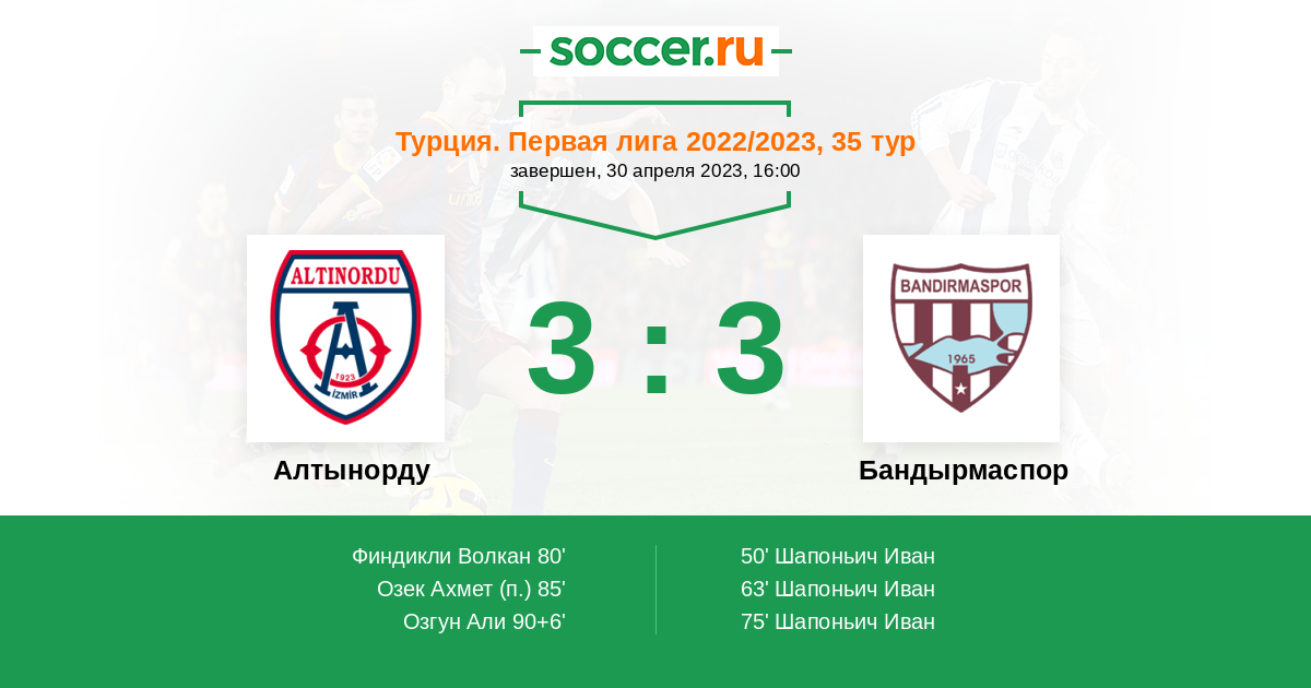80' (1:3) Финдикли Волкан (2) (Айдоган Эмирхан (16))