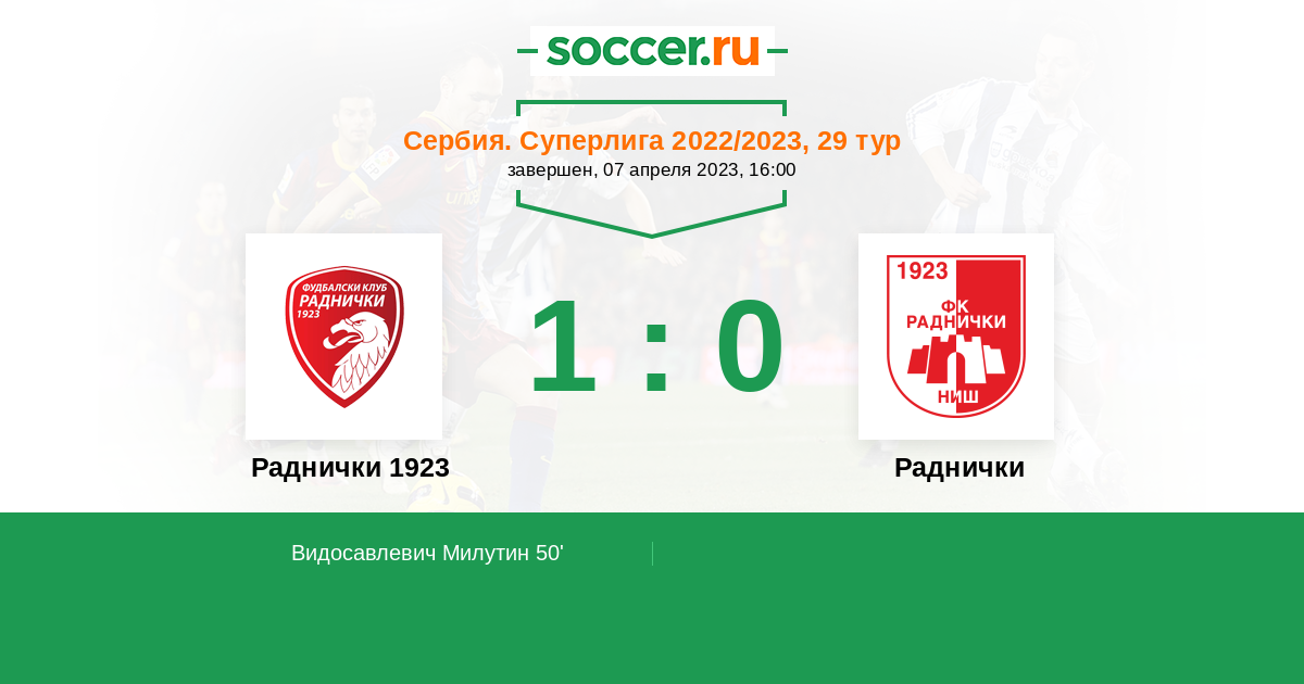 50' (1:0) Видосавлевич Милутин (55)