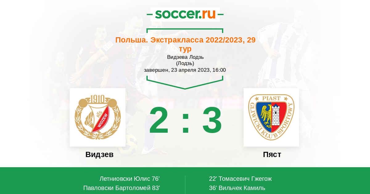83' (2:3) Павловски Бартоломей (19) (Степински Патрик (95))