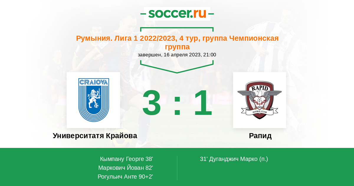 38' (1:1) Кымпану Георге (7) (Владу Стефан (2))