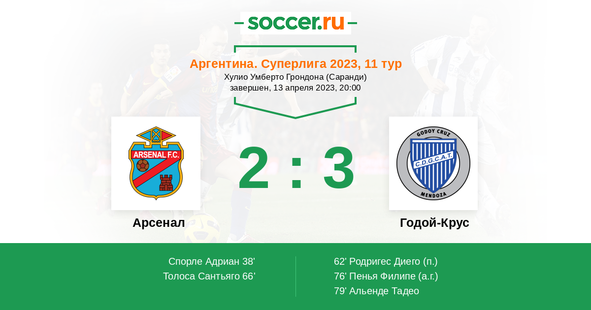 66' (2:1) Толоса Сантьяго (10) (Пенья Филипе (28))