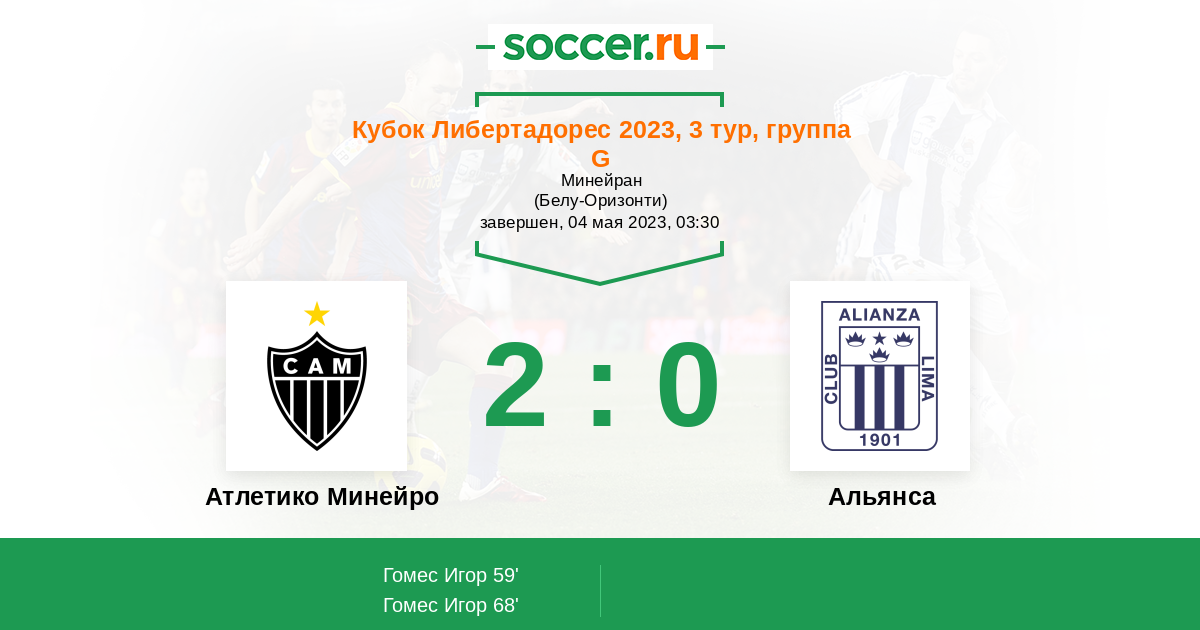 59' (1:0) Гомес Игор (17) (Павон Кристиан (9))