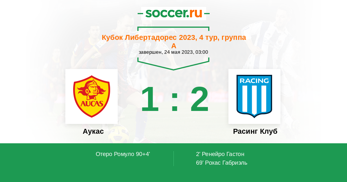 2' (0:1) Ренейро Гастон (9) (Мура Факундо (34))