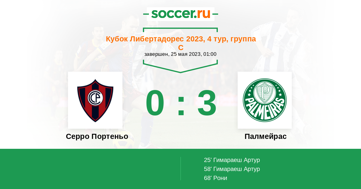 25' (0:1) Гимараеш Артур (14) (Рони (10))