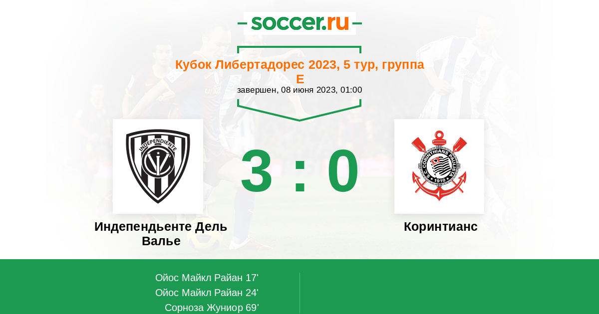 69' (3:0) Сорноза Жуниор (10) (Диас Лаутаро (19))