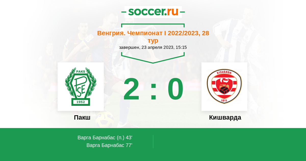 77' (2:0) Варга Барнабас (23)