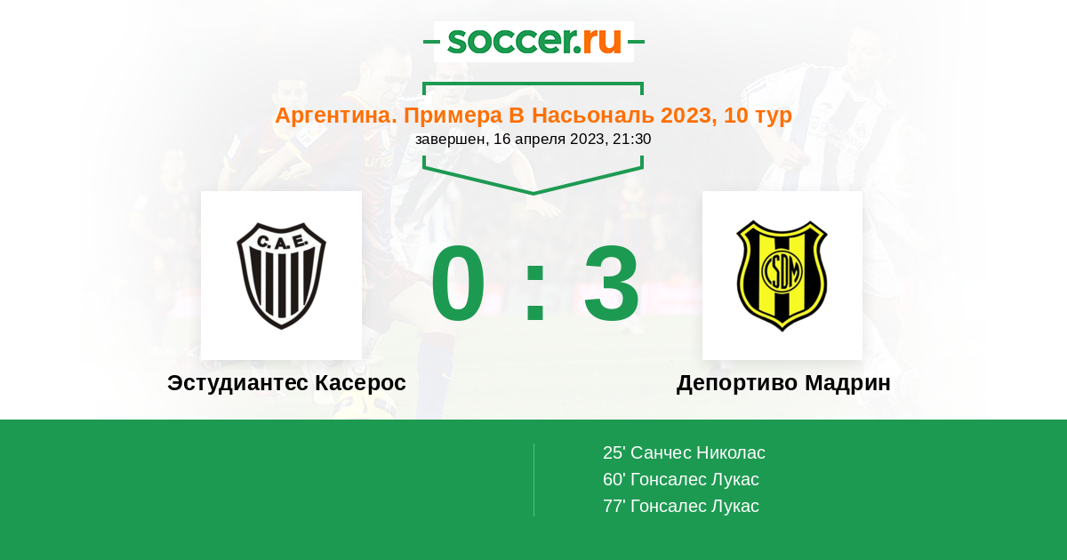Эстудиантес Касерос - Депортиво Мадрин